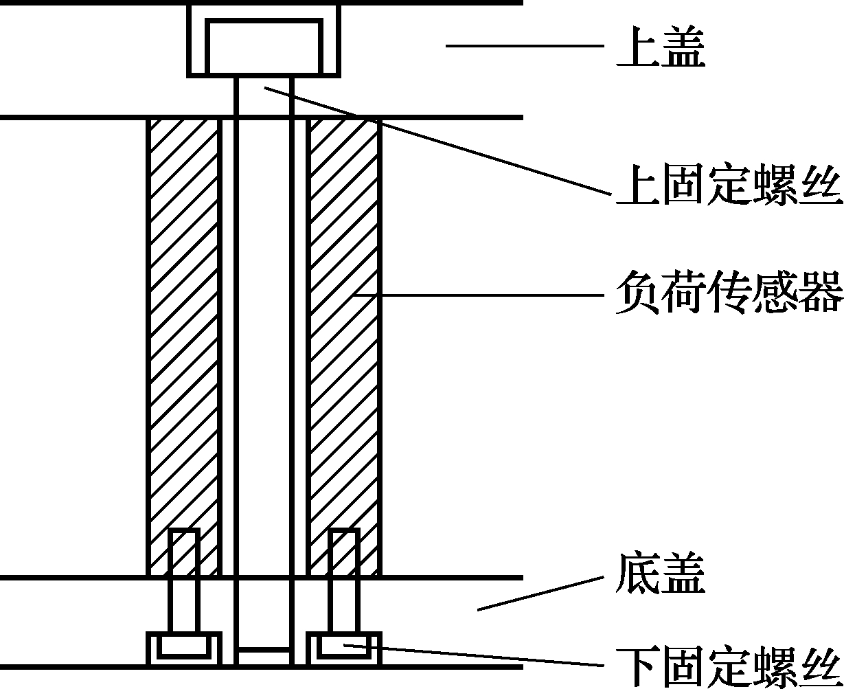 目前常见传感器的装配方式有两种,一是上下端面固定的方式,两端面分别固定在上下盖板上,在工作中可以承受压力和少量拉力;另一种传感器的装配方式为穿芯式固定,如图4所示。传感器紧固时进行了预紧,只可以测出压力载荷,不能用于测量拉力。
